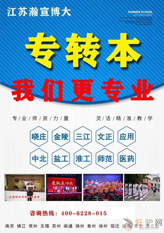 五年制专转本备考生普遍基础薄弱,如果你学习能力差,自律性、自制力差,复习没有方向选择江苏瀚宣博大五年制专转本培训辅导班,可以根据自己的情况选择合适的班次www.ganlv5.com。只要你想学,瀚宣博大必将鼎力相助。早一天努力就多一分转本的信心,多一分成功的可能。
